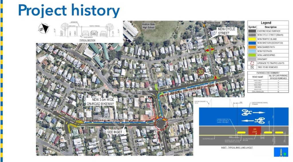 Brisbane City Council’s North Brisbane Bikeway Stage 5 project page confirms a Community Working Group met in early 2024 and later notes that broader community concerns were raised about the Price Street to Kedron Brook alignment after the working group ended. Council states it has discontinued work on that alignment and will return to a previous Kent Road-based concept that uses surrounding streets to connect to the Kedron Brook Bikeway.