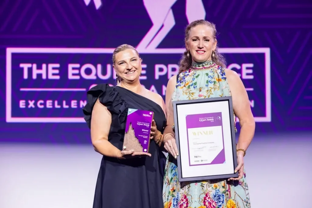 While the team didn’t take home an award at the Lord Mayor’s event in 2025, the very next night, The Equine Practice Company won two major honours at the 2025 Premier of Queensland’s Export Awards – taking out: